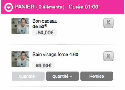 Le bon cadeau se met dans le panier avec une réduction correspondant à son montant.