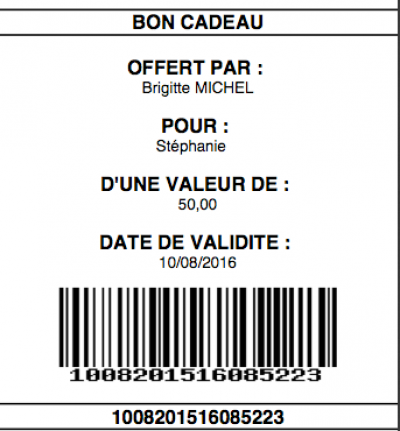 Il sera possible d'imprimer le bon cadeau plus tard, en vous rendant dans la fermeture de session, dans l’onglet Bons Cadeaux.