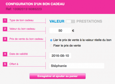 Une fois validé, vous retrouvez votre bon cadeau dans le panier.
