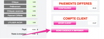 Au moment d'encaisser, un bouton apparait vous permettant d'imprimer si vous le souhaitez ce bon cadeau sur l'imprimante ticket de caisse.